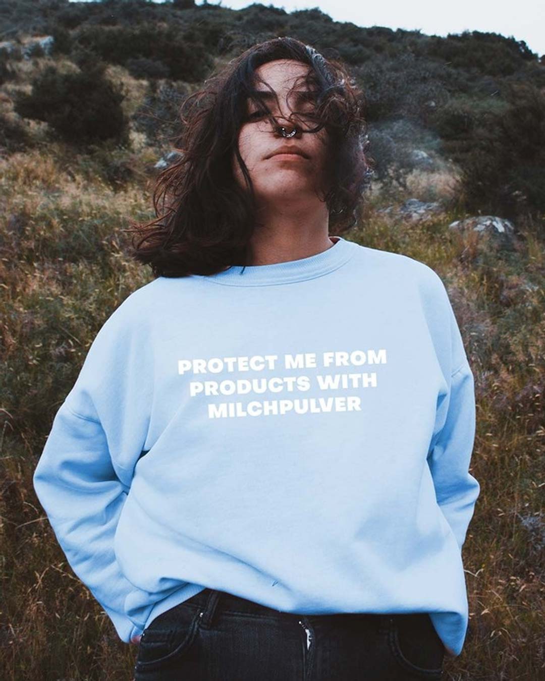 Dieses Protect me from Milchpulver Sweatshirt von ANTI EAT MEAT CLUB kommt im klassischen Style mit einem Protect me from Milchpulver Design auf der Vorderseite. Die Bio-Baumwolle macht den Pullover so bequem, dass du ihn gar nicht mehr ausziehen möchtest. Der Rundhalsausschnitt und die lässige Passform runden das Design ab.